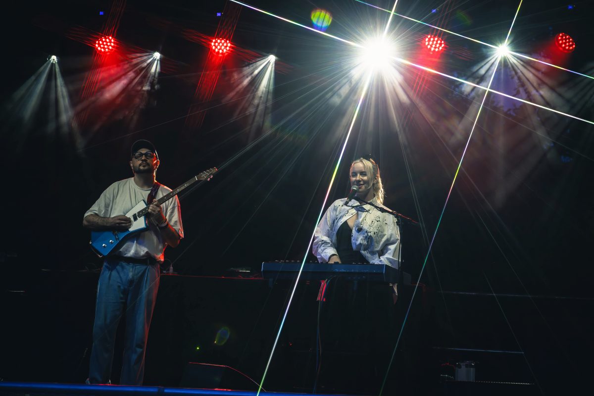 Večer pokračoval s Kriss Krimm – elektropopovým projektom klaviristky Kristíny Smetanovej, ktorá naživo vystúpila spolu s producentom Isobutane. Ich vystúpenie prinieslo podmanivý spev, jemné výšky, výraznú gitaru a klávesy. Ľudia sa bavili, niektorí aj spievali – až prišiel nečakaný lejak, ktorý na chvíľu techniku zaskočil. Ale iba na pár minút – keď dážď ustal, publikum sa vrátilo späť a energia sa ešte zvýšila. Aj dážď sa tak stal súčasťou zážitku.