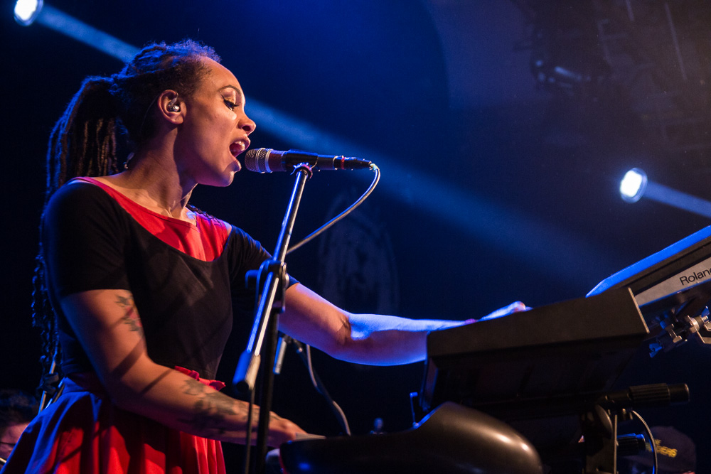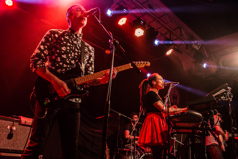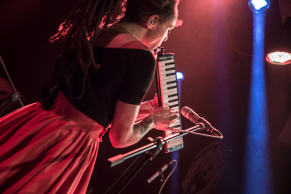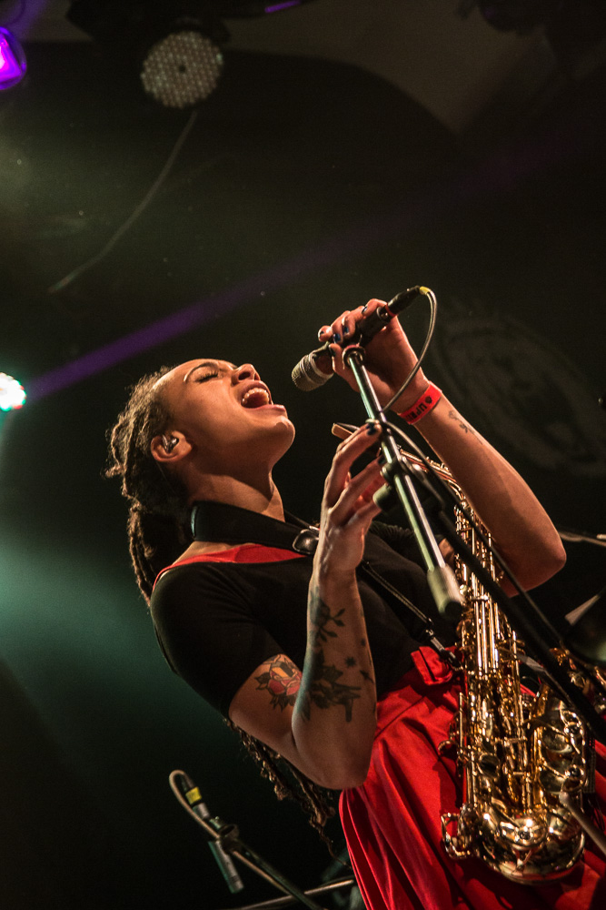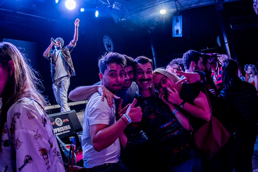 Ako prvý live act prichádzajú na scénu The Skints z Veľkej Británie. Na letnom Uprisingu 2016 patrili k najúspešnejším vystúpeniam. V ich jamajských rytmoch cítiť britský vplyv a tak miešajú reggae, ska, rocksteady s punkom a rockom… Frontman Joshua vo veľkom komunikuje s publikom. Na Slovensku sú po druhýkrát, sú radi, že okrem festivalu si vyskúšali aj klub. Na jeho otázku, kto sa zúčastnil ich letného koncertu, vystrelia do vzduchu dve tretiny rúk a Joshua je príjemne prekvapený a vďačný. Ohlasy publika je počuť od úplného začiatku koncertu. Očarujúca Marcia vystúpila v červených šatách doplnených čiernymi kúskami a počas koncertu hrá na keyboarde, melodike, perkusiách, saxofóne, priečnej flaute aj klávesovej fúkacej harmonike. V setliste majú pripravených asi 9 skladieb, medzi nimi napr. Friends & Business, Ratatat, Rubadub (Done Know), The Cost Of Living Is Killing Me, You Don’t Love Me (No No No) a ďalšie. Zahrali songy, ktoré sme počuli aj v lete, ale aj premiérové. Joshua sa teší, že ľudia spievajú spolu s kapelou a poznamenal: „You can’t spell Slovakia without SKA.“ (Slovakia sa nedá vyhláskovať bez ska.) Vokály má na starosti okrem Marcie a gitaristu Johsuu aj bubeník Jamie. Hudobníkov dopĺňa basák Jonathan. Bratislavské vystúpenie je ich posledným, v poradí 111-tym, na európskej šnúre. Únavu však na nich nevidieť, naopak, energiu rozdávajú publiku a to im ju vracia naspäť.