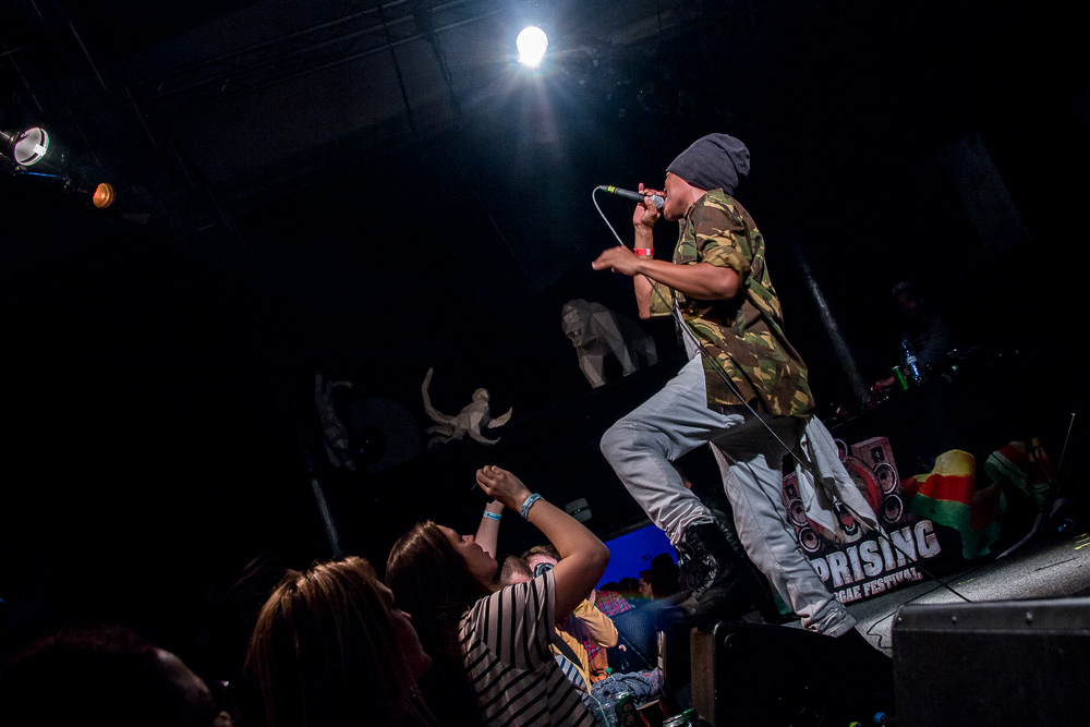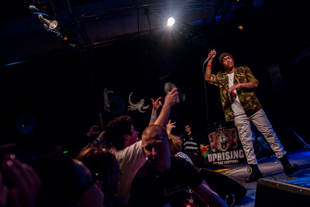 Sála je vyzdobená nápisom UPRISING a bielymi modelmi zvierat. Atmosféru roztáčajú DJs Natty Youth Sound. Na mieste sa rozdávajú CDčká so summer mixom Dub Inc. a odkazom na aktuálny album So What. Medzi ľuďmi sa pohybuje maskot lev Golian. V zadnej časti sa dajú kúpiť lístky na desiaty ročník Uprisingu za zvýhodnenú cenu, merch od Dub Inc., veci z Uprising shopu aj bongoshopu.
