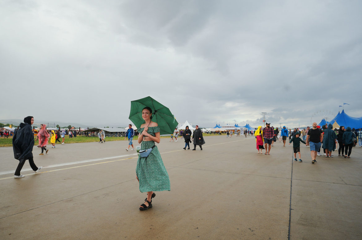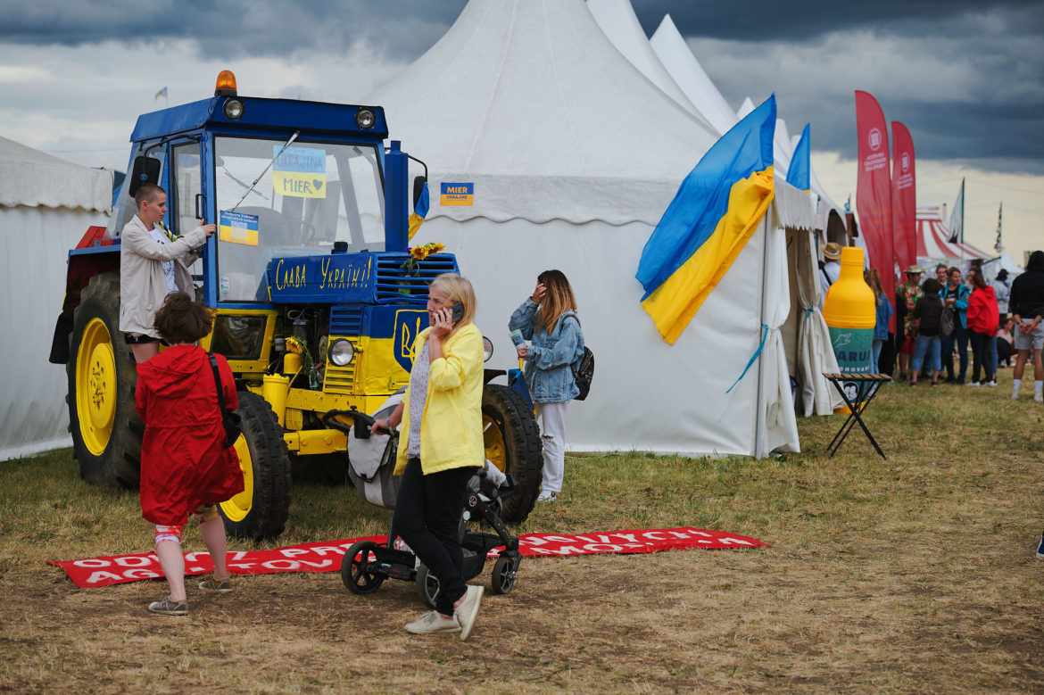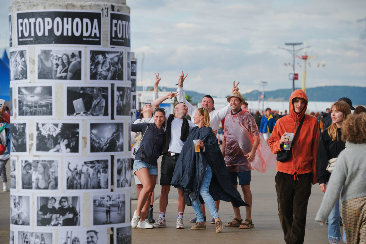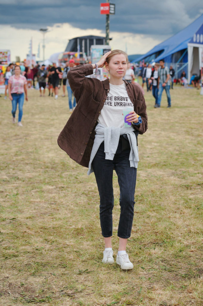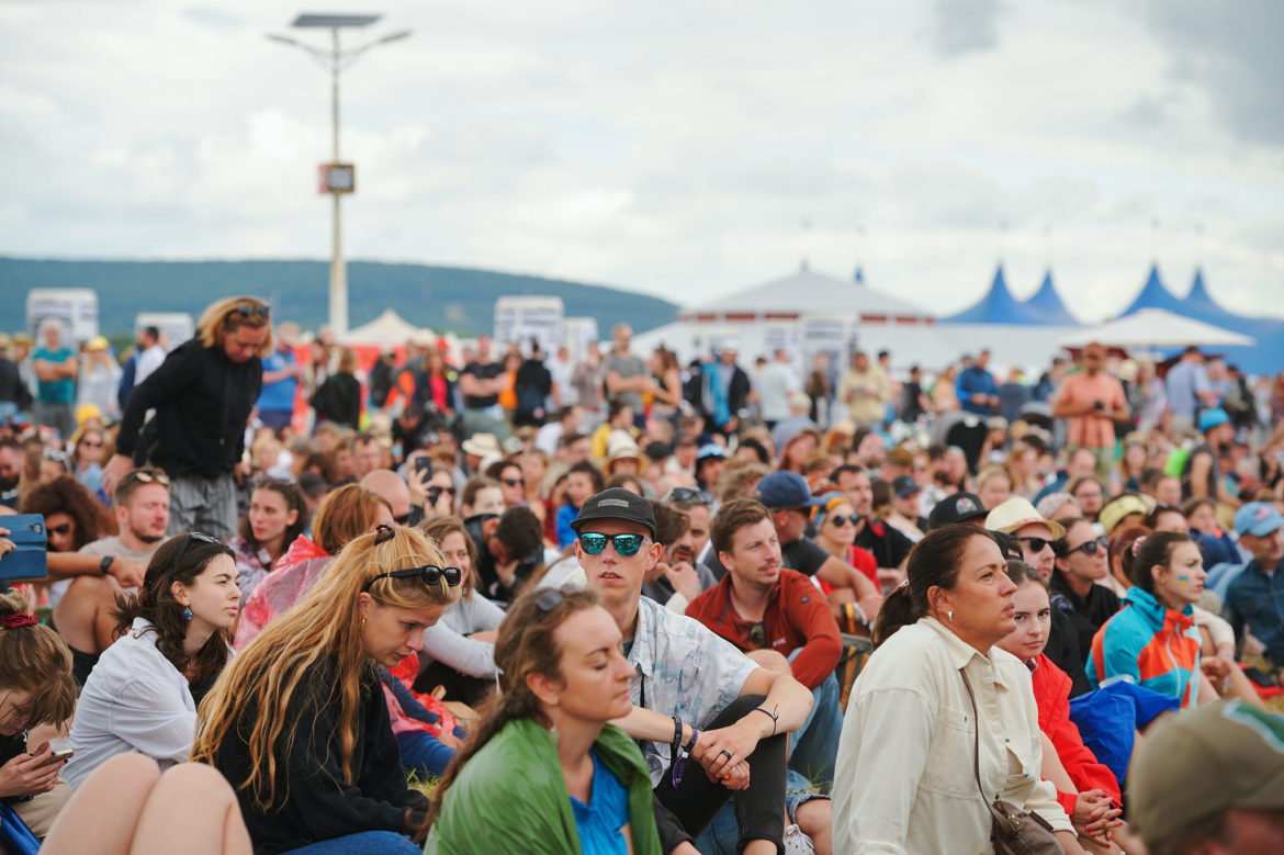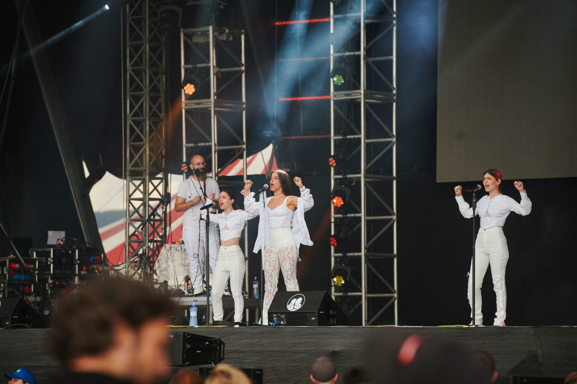 Úplný highlight sa však odohral v Nay tanečnom dome! Už pred začiatkom koncertu ukrajinskej kapely Go_A bol plný čakajúcich fanúšikov. Jednoduchej scéne dominuje ukrajinská vlajka, v publiku veje antifa vlajka s prečiarknutým Z. Niekoľko ľudí v prvom rade drží modrožlté vlajky. Mysticky pôsobiaca nádherná speváčka Kateryna v čiernych šatách okamžite strháva ľudí svojím východným štýlom spevu a ukrajinskými textami, ktoré si publikum spieva. Pred pár dňami hviezdili na Glastonbury, ale naša národná blízkosť sa nedá zaprieť a tak čoskoro vyhlasuje – Toto je najlepší festival! – a oči jej žiaria šťastím.