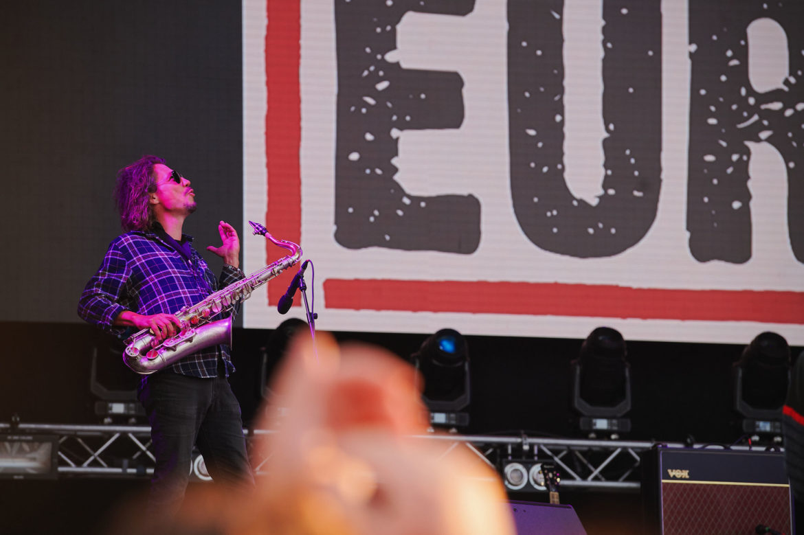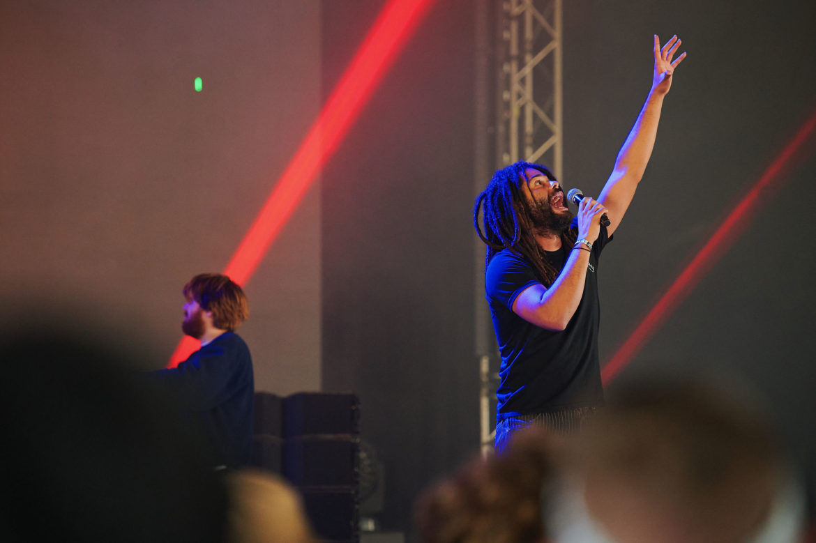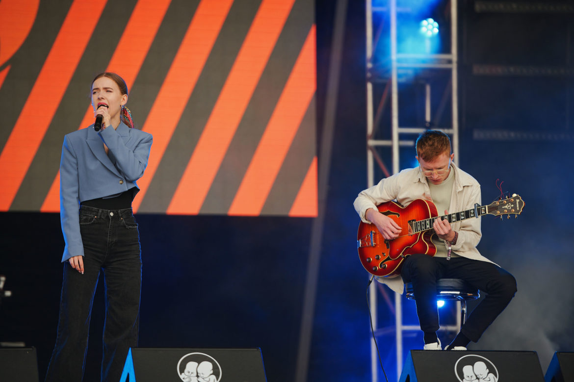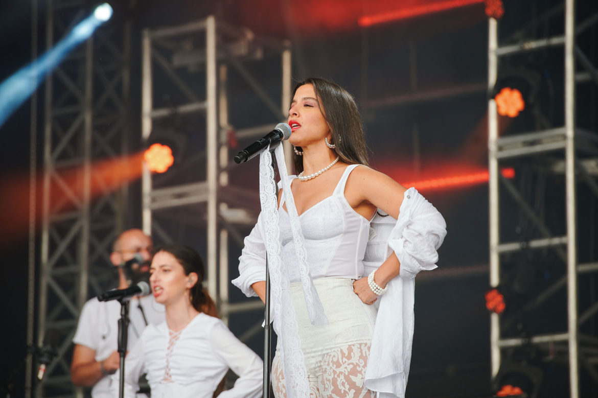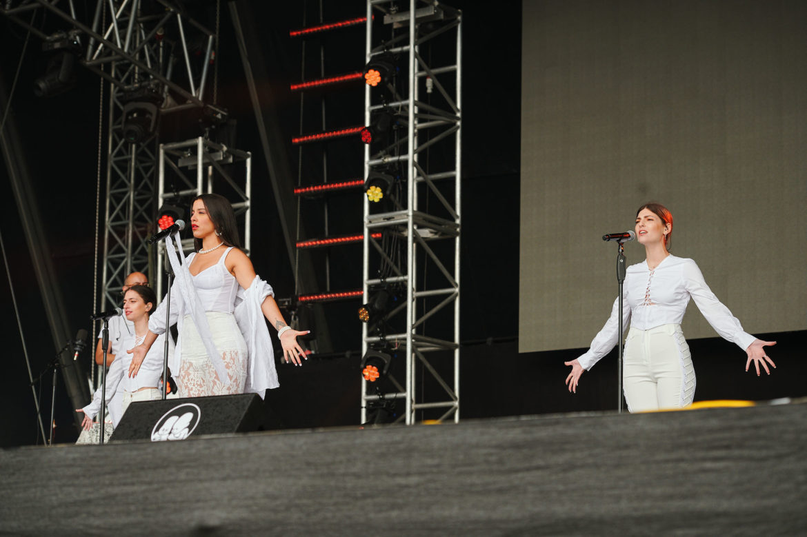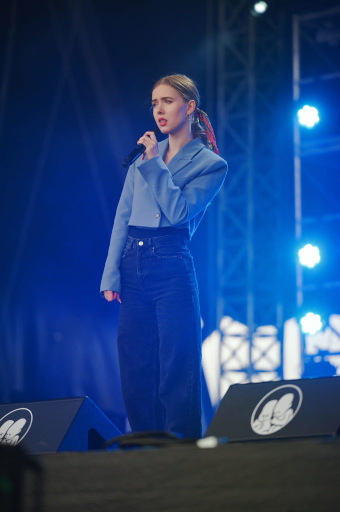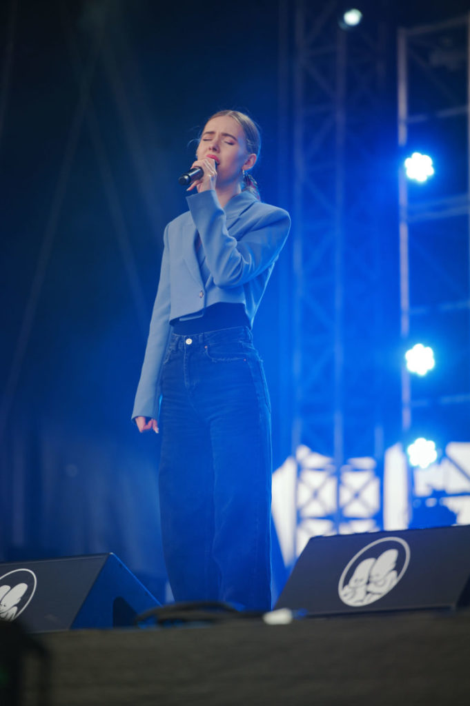 Úplný highlight sa však odohral v Nay tanečnom dome! Už pred začiatkom koncertu ukrajinskej kapely Go_A bol plný čakajúcich fanúšikov. Jednoduchej scéne dominuje ukrajinská vlajka, v publiku veje antifa vlajka s prečiarknutým Z. Niekoľko ľudí v prvom rade drží modrožlté vlajky. Mysticky pôsobiaca nádherná speváčka Kateryna v čiernych šatách okamžite strháva ľudí svojím východným štýlom spevu a ukrajinskými textami, ktoré si publikum spieva. Pred pár dňami hviezdili na Glastonbury, ale naša národná blízkosť sa nedá zaprieť a tak čoskoro vyhlasuje – Toto je najlepší festival! – a oči jej žiaria šťastím.