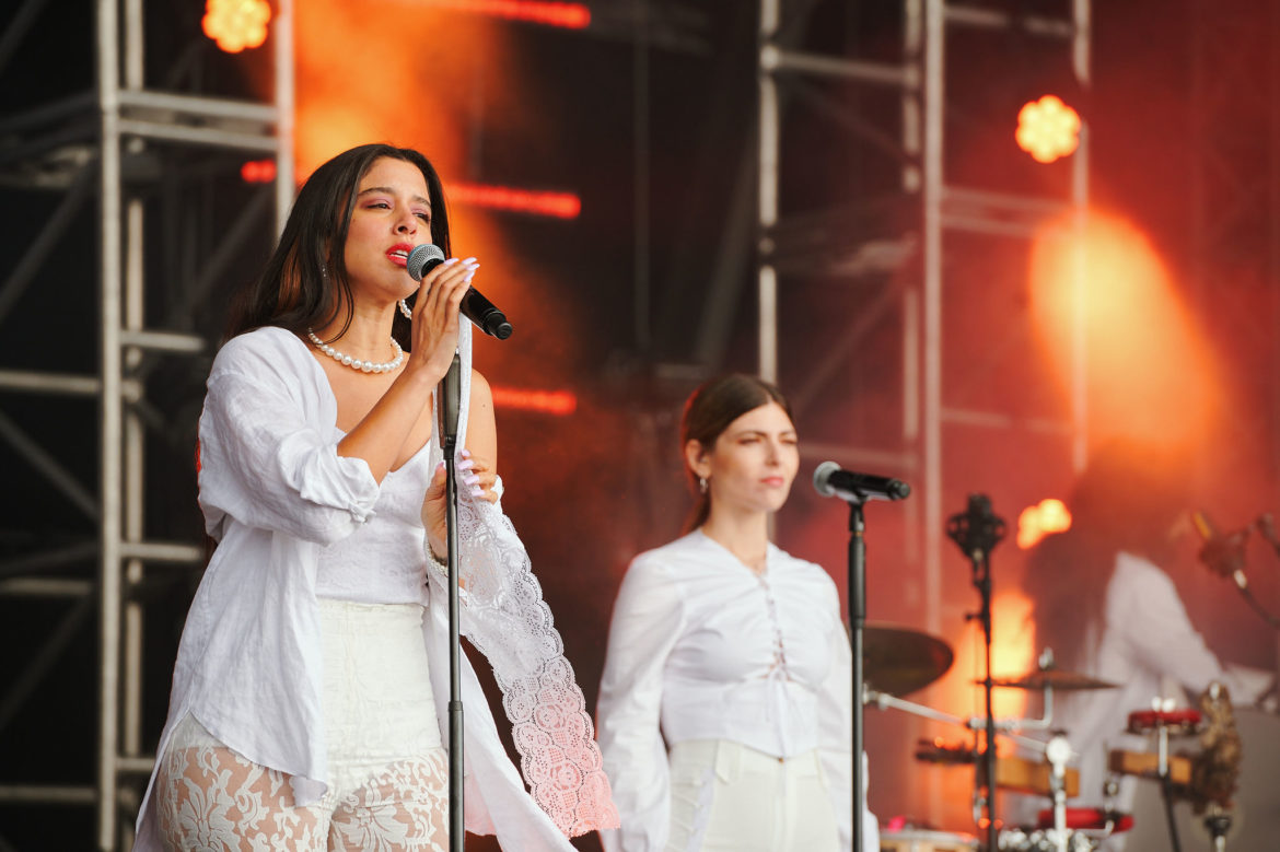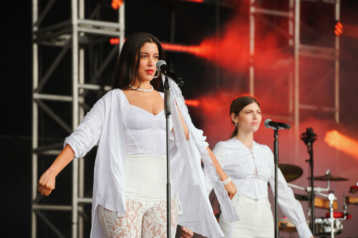 Počas toho, ako je „aktuálne najlepšia kapela Británie“ Wolf Alice na hlavnom stagei, areál trenčianskeho letiska kropí spŕška. O to väčšiu radosť má Marina Satti, Grékyňa so sudánskym pôvodom, ktorá slnku ďakuje. So svojimi dvomi vokalistkami a perkusionistom Kostasom sú oblečení v bielom a okamžite strhávajú publikum Orange stageu. Prekrásne tri hlasy prinášajú úžasnú ženskú energiu a juhovýchodný temperament. Publikum tancuje na tradičné pesničky z Bulharska či Grécka.